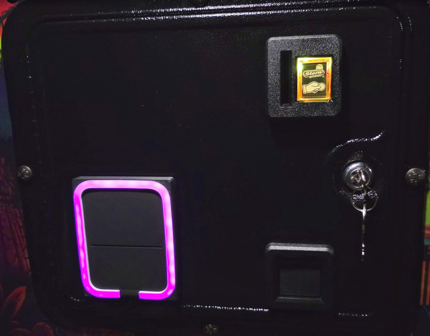 - Edge-lit animated “neon” LED strip, which triggers when a card is dispensed